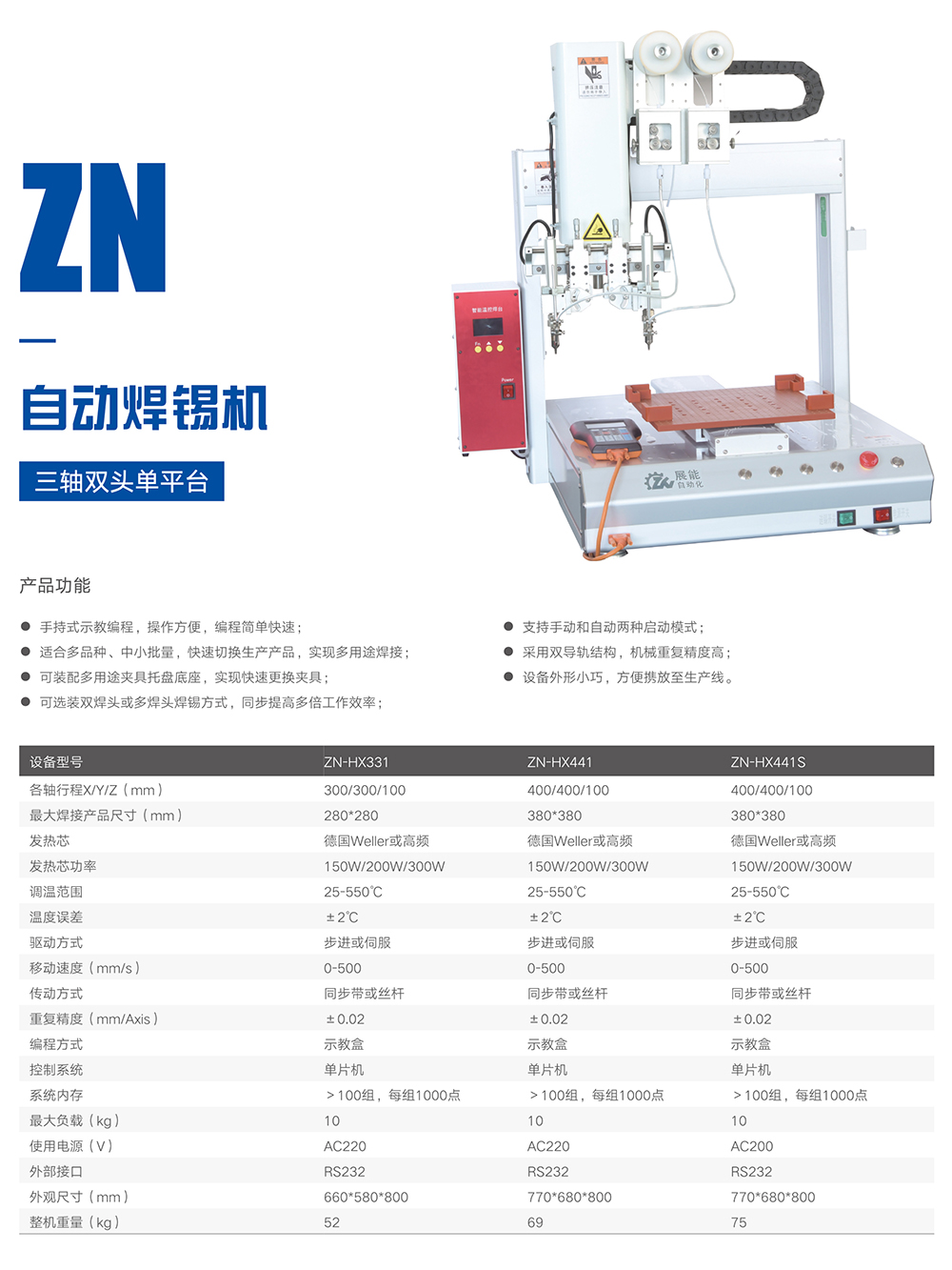 產(chǎn)品包括自動焊錫機(多軸桌面式焊錫機,CCD視覺白動焊錫機,機械手自動焊錫機以及非標自動焊錫機等),自動鎖螺絲機(吸附式鎖螺絲機,吹氣式鎖螺絲機,多軸自動鎖螺絲機,自動鎖螺母機等),點膠機系列設(shè)備(桌面式點膠機,CCD視覺點膠機,高速噴射點膠機,在線式點膠機等)。